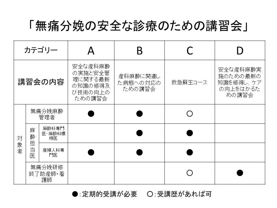 - 対象者:無痛分娩麻酔管理者または麻酔担当医である産婦人科専門医