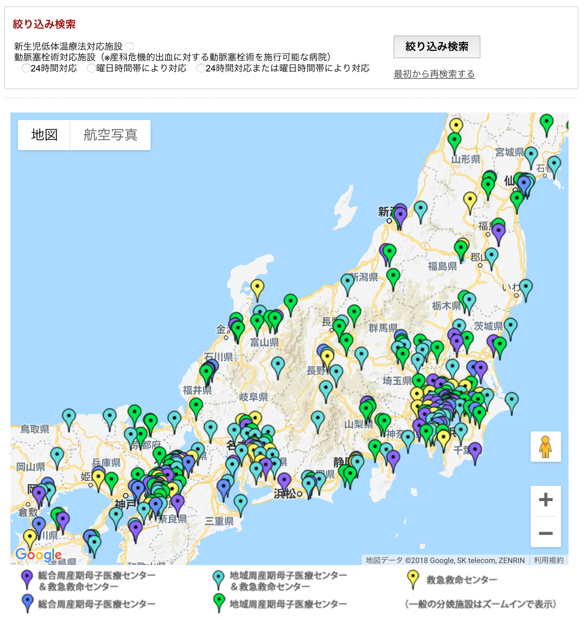 全国の無痛分娩施設の検索、一覧、地図、表示が可能です。各施設名をクリックすると、当該施設における無痛分娩情報の詳細が閲覧できます。